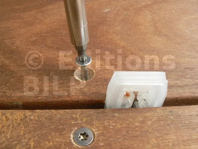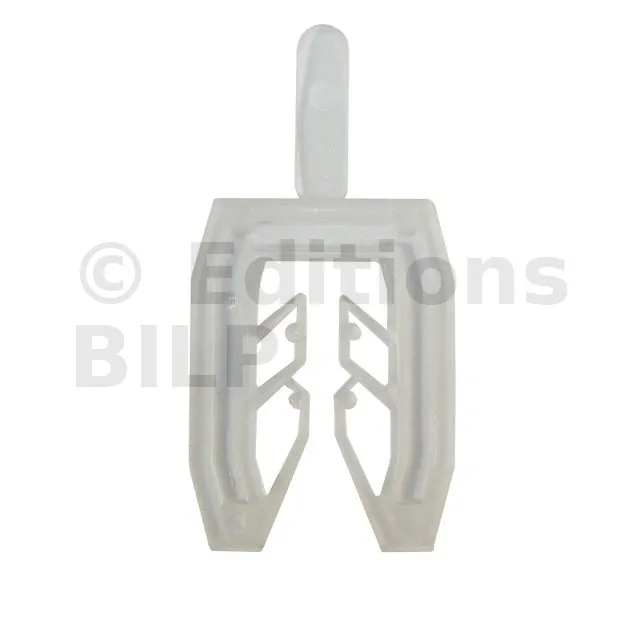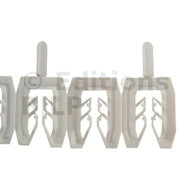 Chaque cale comporte un peigne intérieur (ou fourchette) qui permet de clipser la cale, ou un ensemble de cales, sur une vis. On peut clipser efficacement sur des vis, ou tirefond, ou tige filetée, de diamètres allant de 3 à 9 mm. Ainsi, la cale reste sur son support même si celui-ci bouge. La moitié des cales comporte une petite languette qui vous permettra de l’insérer et la pousser facilement sous un espace restreint, sous une lambourde par exemple.