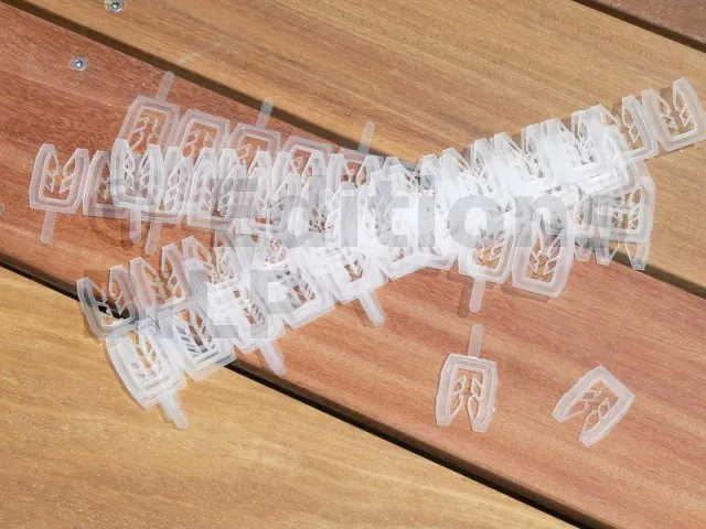 Les cales sont réalisées dans du polypropylène qui est un matériau synthétique très résistant, insensible au gel et à l’humidité et pouvant supporter de hautes températures. La forme de la cale et le matériau polypropylène font que l’humidité ne peut pas migrer du support (une dalle en béton par exemple) vers la pièce en bois. C’est le matériaux idéal pour cet usage.
