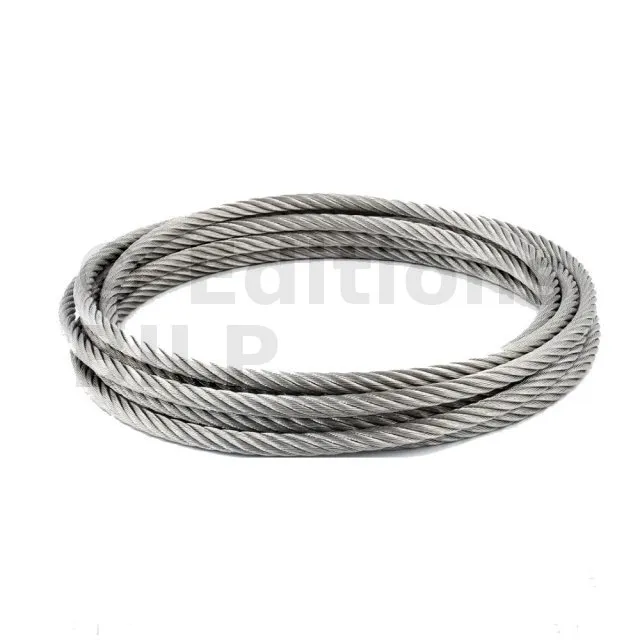 Câble constitué de 7 torons, chacun composé de 19 fils fins torsadés ensemble. Cette configuration confère au câble une grande flexibilité, lui permettant de se courber et de se manipuler facilement sans se casser ni se dégrader.