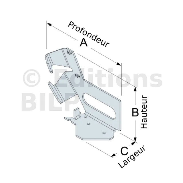 - Ce gabarit trouve son utilité avec les gammes de vis filetage total ou vis sarking car l’angle de vissage est majoritairement à 45° ou à 60°. Il peut toutefois être utilisé pour n’importe quel type de vis de longueur supérieure à 100 mm pour une configuration à 45°, et supérieure à 140 mm pour une configuration à 60°.