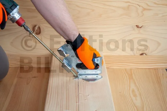- Assemblage de solive sur poutre par vis croisées (vis à 45°),