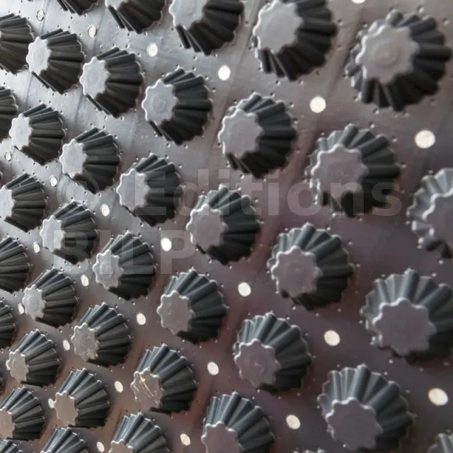 - Les alvéoles octogonales permettent de stocker jusqu’à 7 litres/m² d’eau, l’excédent d’eau s’écoule ensuite sous la membrane via les perforations entre les alvéoles. La membrane est écologique et résistante aux produits chimiques, aux bactéries, aux substances alcalines et aux racines.