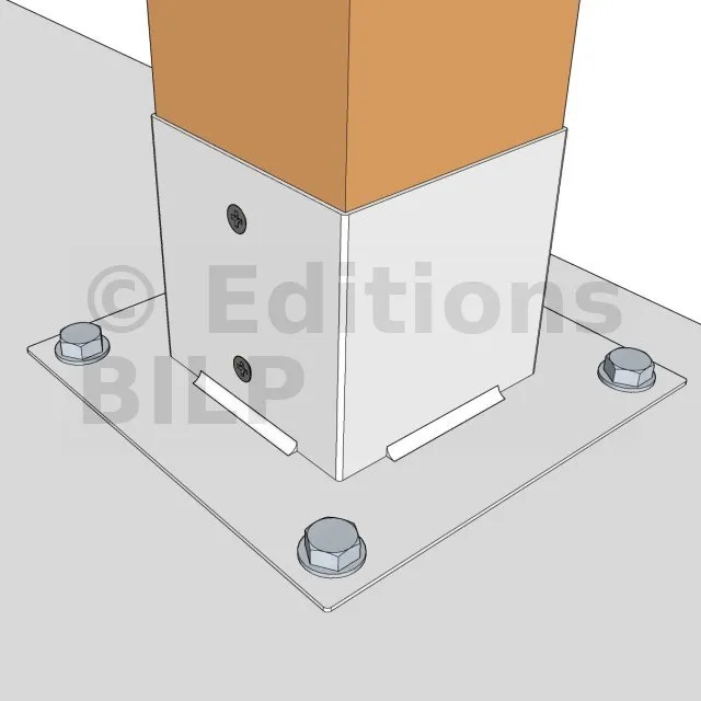 Il permet la fixation des poteaux sur une dalle ou un plot en béton.