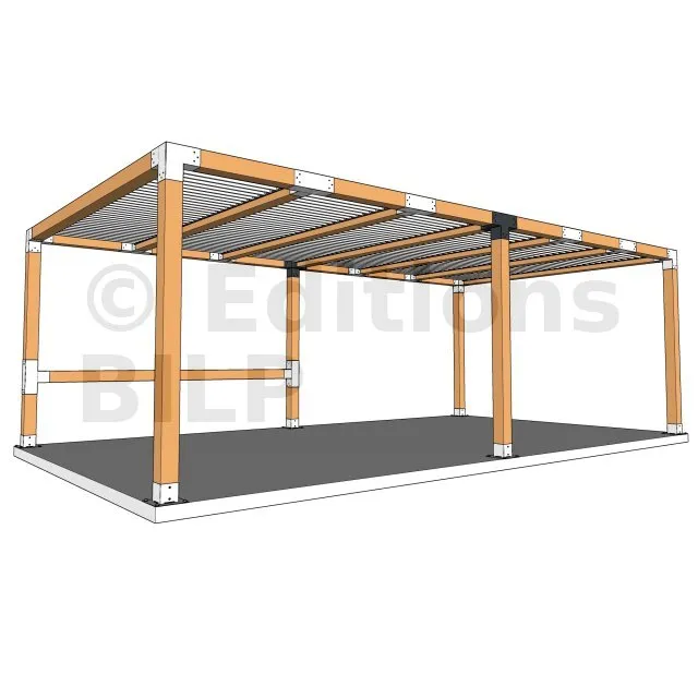 Il permet de raccorder une poutre de 120x120mm perpendiculairement à un chevron de 120x120mm, le tout étant supporté par un poteau vertical de 120x120mm.
