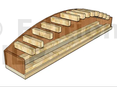 Ci dessous un exemple de coffrage arc surbaissé de portée 1,20 m et une montée de 15 cm. L’avantage de ce coffrage c’est qu’il sera réutilisable.