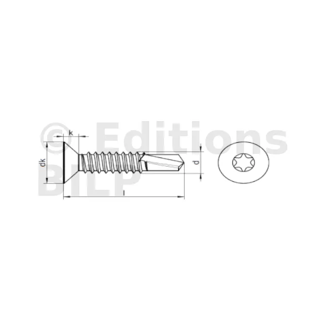 six lobes internes, avec filetage de vis à tôle