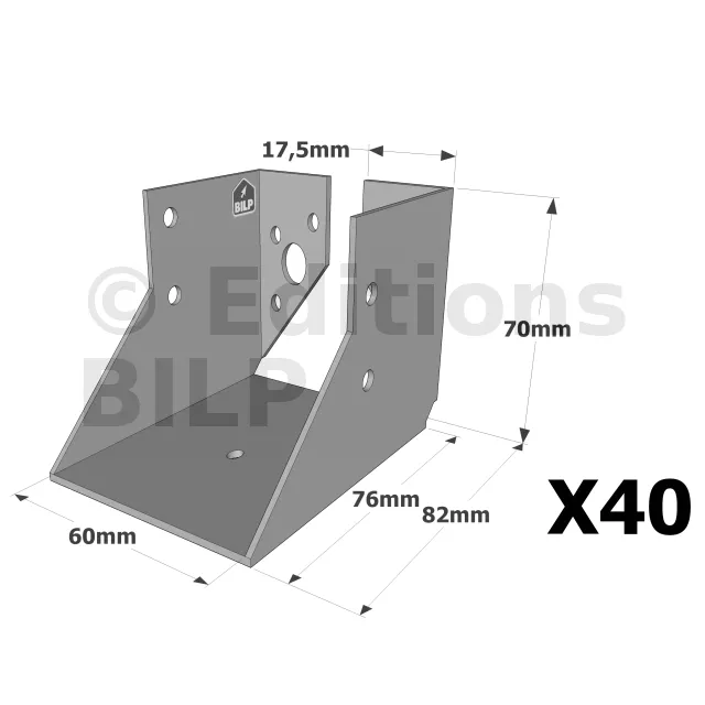 On admet une tolérance de 2 mm maximum entre l‘épaisseur du bois et la largeur du sabot. Exemple : un sabot plié à 76 mm peut porter une épaisseur de bois de 74 mm.