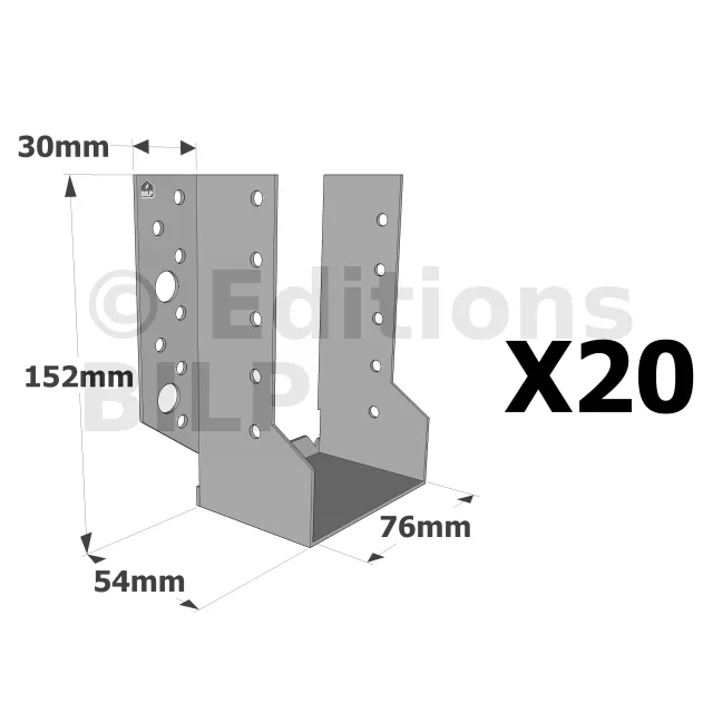 Sabots à ailes extérieures, gamme SBE ECONOMIQUE (épaisseur 1,5mm, profondeur 55mm) - Réf. SBE76/152_20