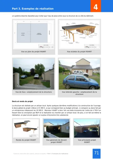 Des informations concrètes pour votre projet. Tous les secrets, tous les trucs et les astuces pour réussir votre carport, préau ou auvent. Toutes les techniques, tous les produits vous sont décrits de façon objective et indépendante. Des vues détaillées vous décrivent toutes les étapes de la construction.