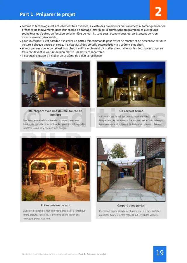 Des informations concrètes pour votre projet. Tous les secrets, tous les trucs et les astuces pour réussir votre carport, préau ou auvent. Toutes les techniques, tous les produits vous sont décrits de façon objective et indépendante. Des vues détaillées vous décrivent toutes les étapes de la construction.