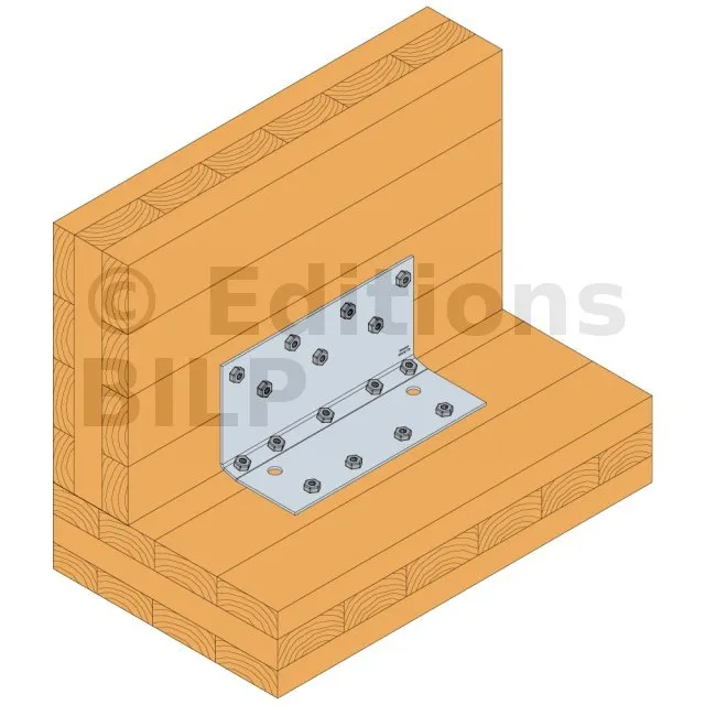 Installées avec des vis SSH à fort diamètre pour connecteurs (droites et inclinées), cette équerre reprend de fortes charges et permet une installation rapide.