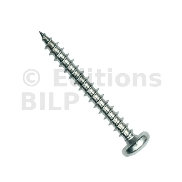 Vis bois tête bombée (fixation d’élément ACIER sur BOIS) - 4.0x30mm - INOX A2 - Réf. 77923