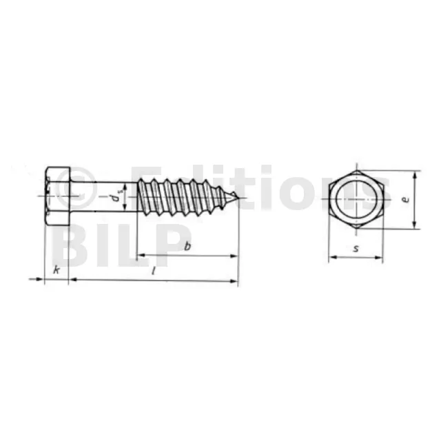 - Normes similaires : La norme ISO correspondante est ISO 885 pour les vis à bois avec tête hexagonale.