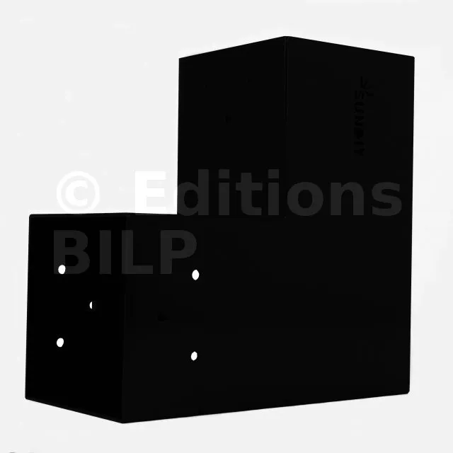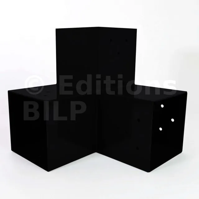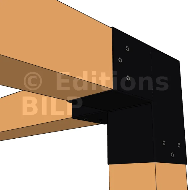 Il est utilisé dans un angle extérieur. Ce connecteur va permettre de raccorder une poutre 90x90mm perpendiculairement à une poutre 90x90mm, le tout étant supporté par un poteau vertical 90x90mm.