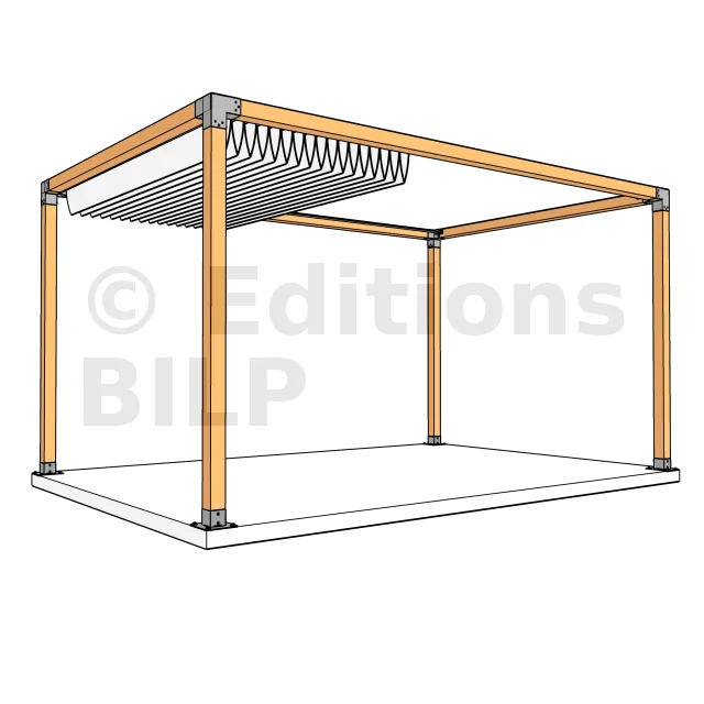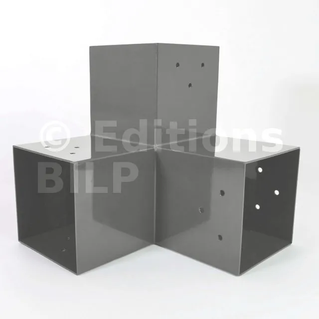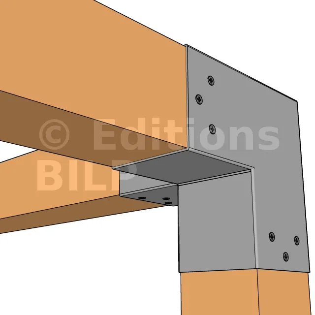 Il est utilisé dans un angle extérieur. Ce connecteur va permettre de raccorder une poutre 90x90mm perpendiculairement à une poutre 90x90mm, le tout étant supporté par un poteau vertical 90x90mm.