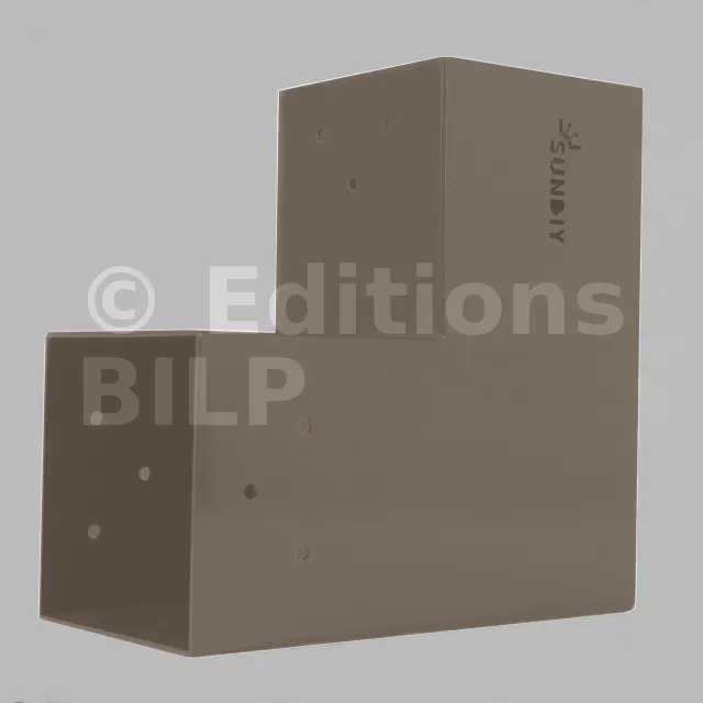 Il est utilisé dans un angle extérieur. Ce connecteur va permettre de raccorder une grosse poutre 120x120mm perpendiculairement à une poutre 120x120mm, le tout étant supporté par un poteau vertical 120x120mm.