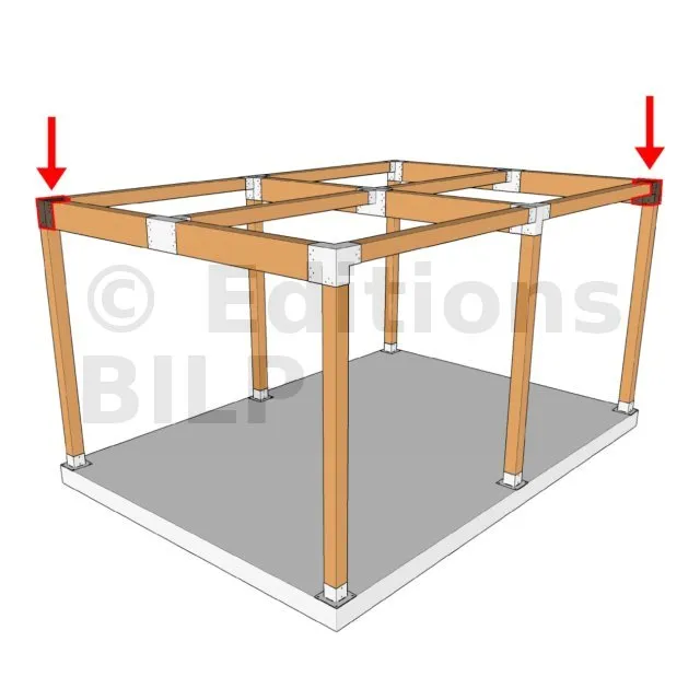 Il est utilisé dans un angle extérieur. Ce connecteur va permettre de raccorder une grosse poutre 240x120mm perpendiculairement à une poutre 120x120mm, le tout étant supporté par un poteau vertical 120x120mm.