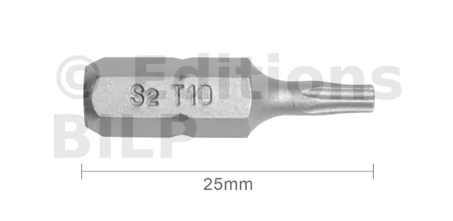 Embout T10 25mm (Qualité Professionnelle, Acier S2) - lot de 20 embouts - Réf. EmboutT10_20