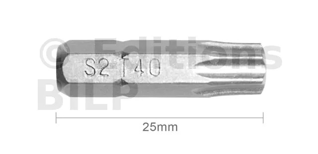 Embout T40 25mm (Qualité Professionnelle, Acier S2) - lot de 5 embouts - Réf. EmboutT40_5