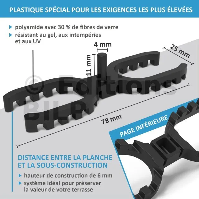 Le choix de l’épaisseur des cales est essentiel pour la durabilité de votre terrasse :