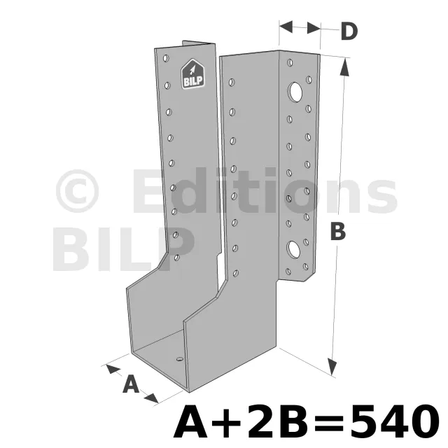 Grands sabots à ailes extérieures, gamme GLE ECONOMIQUE (développé 540mm, hauteur 235mm, épaisseur 2.5mm, profondeur 90mm) - Réf. GLE540/32/2.5