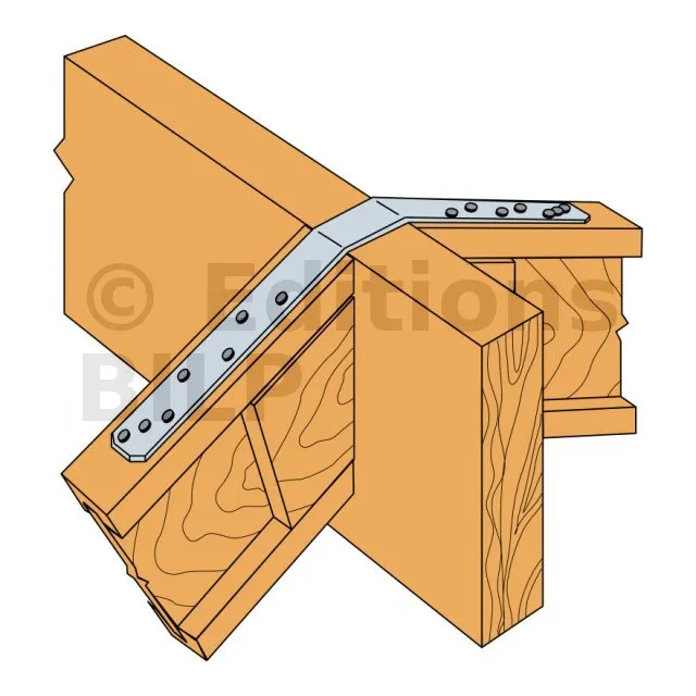 Le feuillard prédécoupé LSTA permet, entre autre de reprendre les efforts à la traction dans le cas par exemple de poutres utilisées en chevron contre panne faitière.