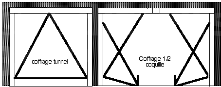 Ce type de coffrage rassemble simultanément le coffrage des murs et de la dalle. Il est conçu pour des dimensions prédéfinies et répétitives spécifiques à un chantier. Il peut être monobloc lorsque la dalle possède une autoportance suffisante ou en demi-coquille si le plancher ne fournit pas une autoportance adéquate.
