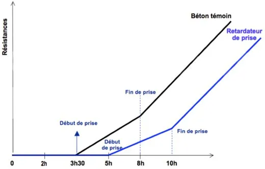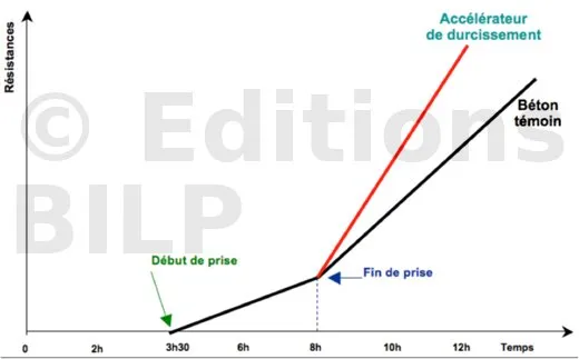 - Effets sur le béton : accroissement de la vitesse de montée en résistance du béton, amélioration des résistances à court terme.