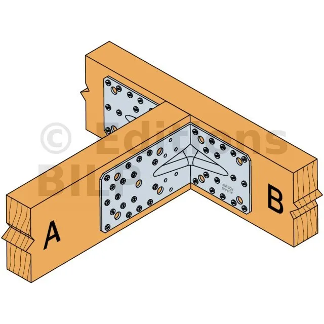 - Fixation poutre bois sur poteau bois - Clouage partiel2 équerres Aile A : 13 CNA Ø4.0x35 ou Ø4.0x50 mm ou Aile B : 8 CNA Ø4.0x35 ou Ø4.0x50 mm