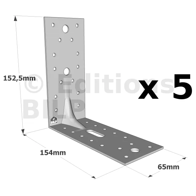 Équerres renforcées CLASSIQUES asymétriques pour le BOIS et le BETON - Réf. E9/2.5_5