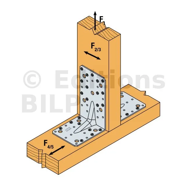 - Fixation BOIS/support rigide - clouage total2 équerres ; Aile A : 12CNA Ø4.0x35 ou Ø4.0x50 mm ; Aile B : 1Ø10 (boulon ou tirefond)