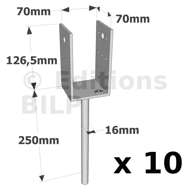 Pieds de poteau en U à sceller - Réf. PPD70/70G_10