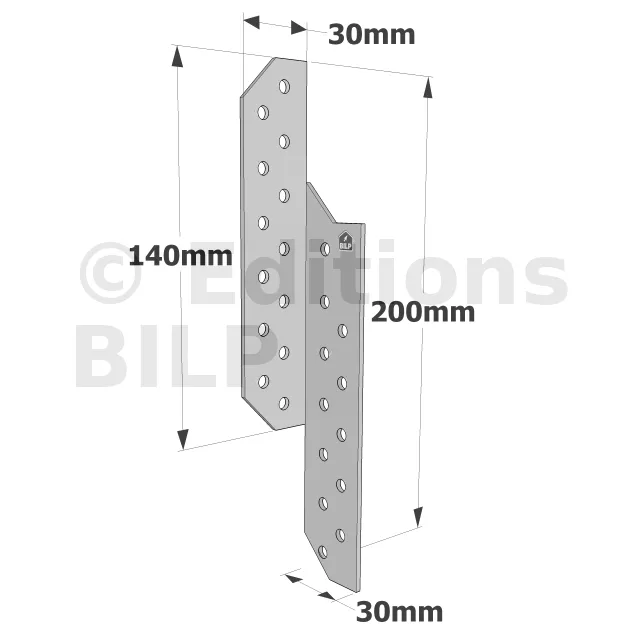 Patte de solivage DROITE - 30x200x2mm - Réf. PSD200/30/2_10