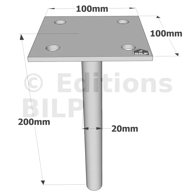 Pieds de poteau à sceller simple platine - Réf. PPSP100