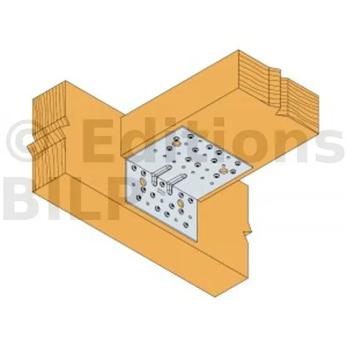 - Fixation bois/bois - type poutre/poutreAile A : 16 ; Aile B : 13 ; type : Pointes annelées CNA Ø4.0x35 ou Ø4.0x50 mm