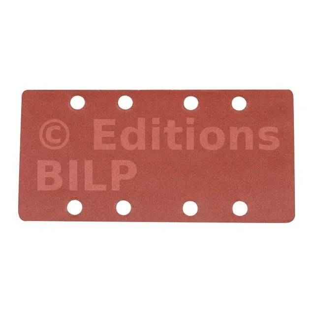 Corindon. Feuilles prédécoupées et perforées adaptées à la plupart des ponceuses 1/3 (93 x 190 mm). Dos auto-agrippant pour fixation rapide.