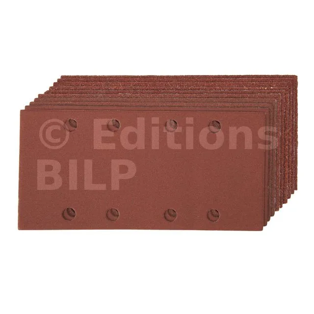 Lot de 10 feuilles abrasives 1/3 auto-agrippantes perforées - Grains assortis 2 x 60mm, 3 x 80mm, 3 x 120mm, 2 x 240mm - Réf. 892499