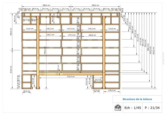 Les plans de structure à l’échelle sont faciles à lire et à comprendre. Ils vous permettrons de réaliser vous-même la structure de votre projet. Les détails de réalisation sont indiqués. Nous calculons et optimisons les dimensions et les sections de pièces de bois.
