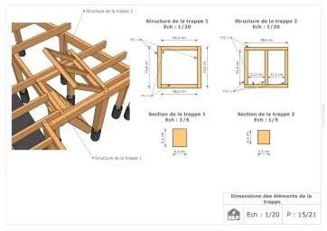Les plans de structure à l’échelle sont faciles à lire et à comprendre. Ils vous permettrons de réaliser vous-même la structure de votre terrasse. Les détails de réalisation sont indiqués. Nous calculons et optimisons les dimensions et les sections de pièces de bois.