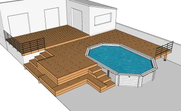 Vous choisissez les matériaux : pin traité classe 4, Robinier, Teck, Ipé, composite, etc. pour obtenir un rendu réaliste.