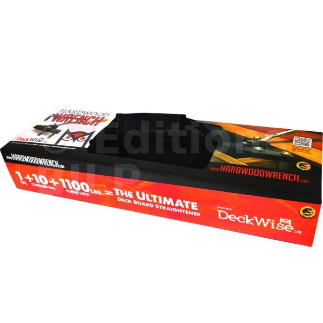 Breveté aux États-Unis en 2010, le redresseur de lames de Deckwise est l’outil parfait pour une installation par une seule personne.Il procure de nombreux avantages par rapport aux autres redresseurs de lames. Une simple rotation du manche de l’outil redresse les lames les plus déformées, grâce à une force de flexion de 500 daN.