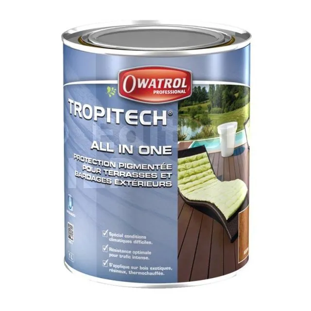 TROPITECH "All in One" : protection teintée LONGUE DUREE pour terrasses et bardages. Phase aqueuse