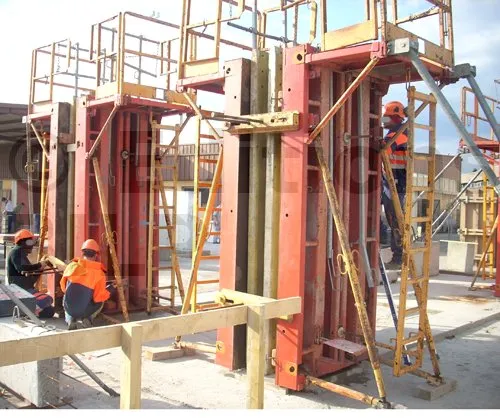 Les poteaux larges peuvent être coffrés à l’aide de banches de 1,20 m avec des abouts adaptés à la section du poteau.