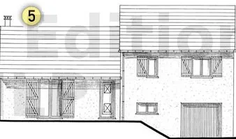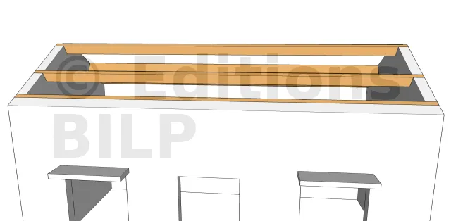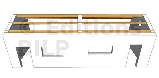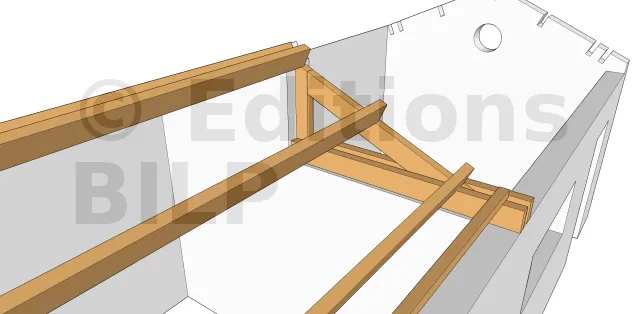Placer une ferme intermédiaire dans le cas d’un comble habitable nécessite l’utilisation d’une ferme à entrait retroussé. L’espacement entre l’appui et la ferme dépend des caractéristiques des pannes en bois massif ou des poutres en I. Il est important de prévoir les appuis de la ferme dans la maçonnerie tout en conservant la continuité des chaînages horizontaux. La portée P doit être inférieure à 5 m.