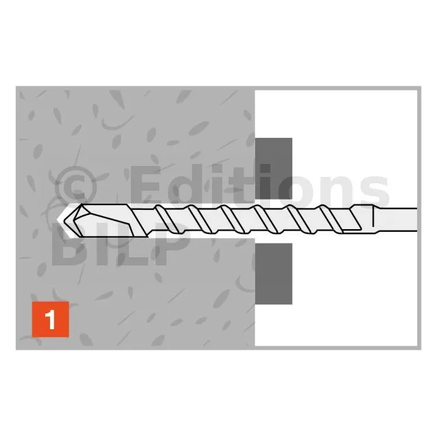 - Montage au travers de l’élément à fixer, Ø de perçage = Ø de cheville,