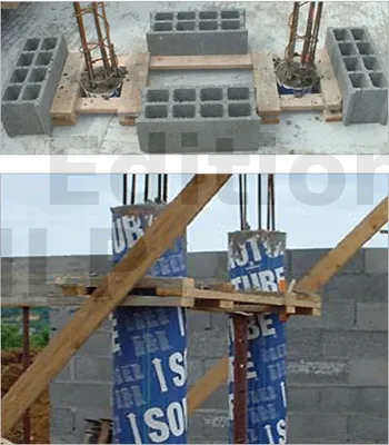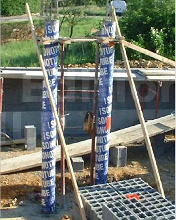 - Placez votre coffrage carton en bas, autour de votre talonnette coulée et en haut maintenez votre cadre avec des étais.