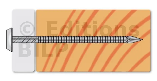 Pointe annelée tête surmoulée blanche en polymère - Inox A4