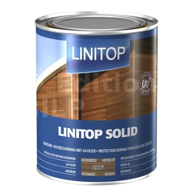 LINITOP SOLID est une lasure de protection haute performance, satiné-mat, pour bois intérieur et extérieur. Elle décore et offre une protection de longue durée à vos fenêtres, portes, huisseries, bardages, clôtures, balustrades, chalets,....grâce à sa double protection haut extrait sec.