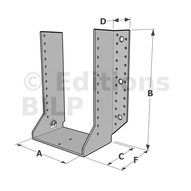 Les sabots GSE en acier galvanisé offrent une flexibilité grâce à des largeurs au choix selon les plages indiquées. Cette caractéristique permet de s’adapter parfaitement aux dimensions spécifiques des éléments de construction, garantissant une compatibilité optimale et une fixation stable.