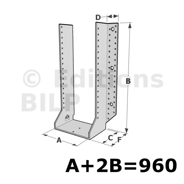 Grands sabots à ailes extérieures, gamme GSE CLASSIQUE (épaisseur 4mm, profondeur 110mm) - Réf. GSE960/4X-AL